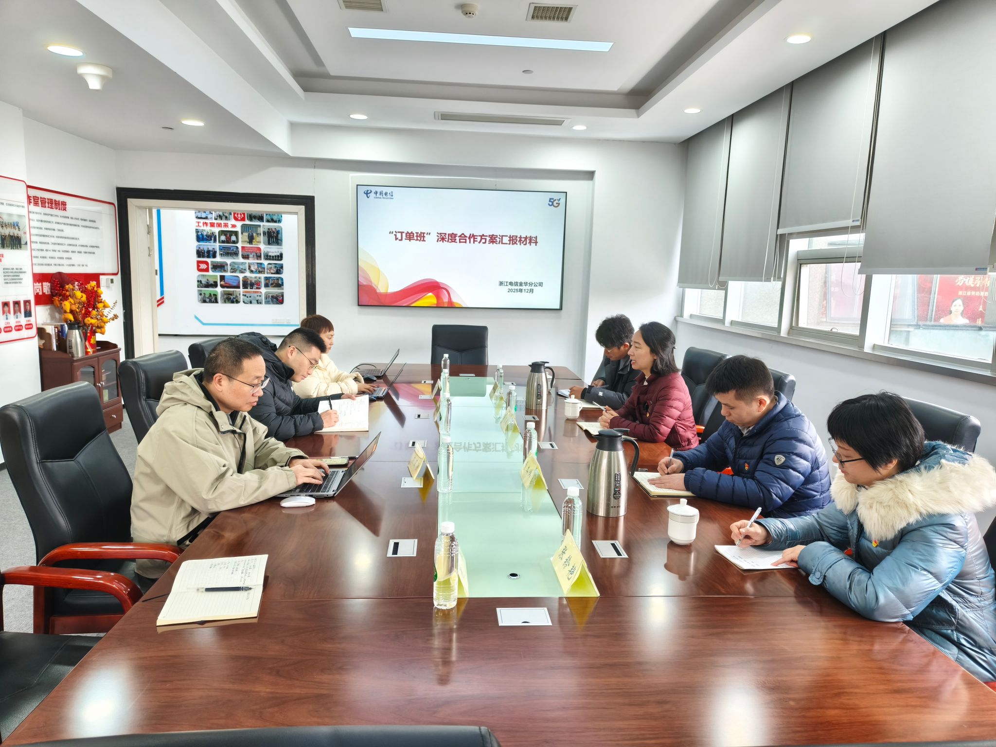 为深入贯彻党建引领校企合作育人理念,精准对接行业人才需求,12月25日上午,运输管理学院院长王吉敏、副院长董其炜、物联网专业教研室主任何思航及专业教师张铃艳一行四人前往中国电信金华分公司,开展“电信”订单班人才培养深度交流活动。中国电信金华分公司政企部教育卫建总经理潘腾、技术工程师应卫强、人力资源赋能中心陈碧琴、教育行业总监谢珏等相关负责人出席活动,双方围绕订单班合作方案展开深入研讨。