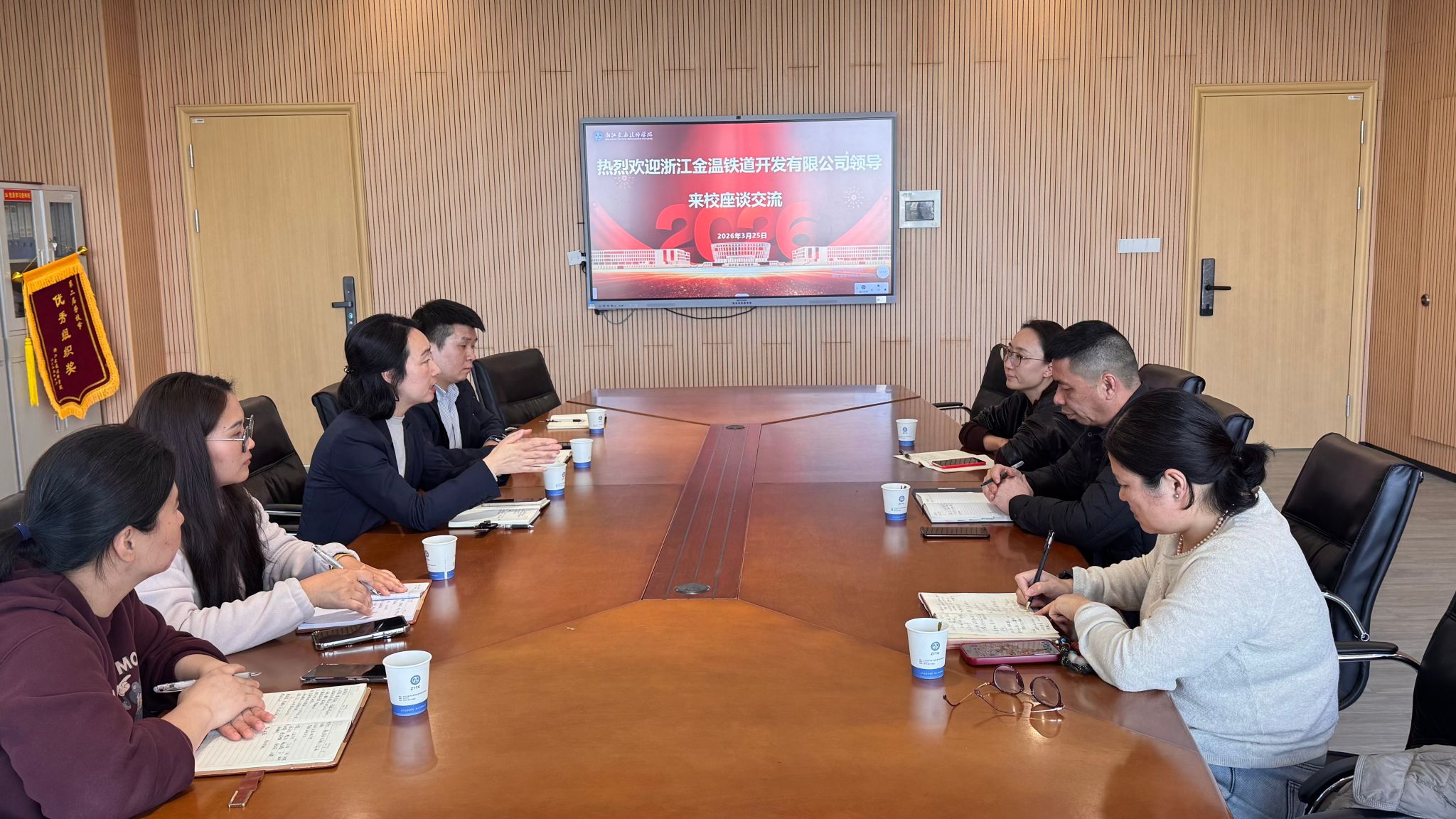 3月25日,浙江金温铁道开发有限公司人力资源部部长陶晓敏一行再次到访浙江交通技师学院,与学院围绕校企合作深化及实习就业推进等核心议题,开展深入交流座谈,进一步夯实校企协同育人根基。运输管理学院院长王吉敏、副院长董其炜及相关班主任热情接待了来访嘉宾。