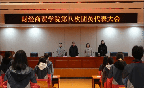 在习近平新时代中国特色社会主义思想的指引下,为厚植学生爱国爱党爱团情怀,进一步激发团员青年的归属感与工作热情,2025年1月3日,财经商贸学院在精艺楼报告厅隆重举行第八次团员代表大会。此次大会不仅全面总结了2023—2024近两年的团学工作成效,更为未来两年学院的团学工作制定了详细的规划。财经商贸学院党支部书记、学院院长陈春,校团委副书记宋墨,团总支书记虞佳等领导出席了会议。