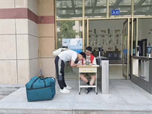 8月25日清晨七点半,财经商贸学院班主任和身穿红马甲的志愿者已准备就位,用饱满的热情迎接同学和家长们的到来。
