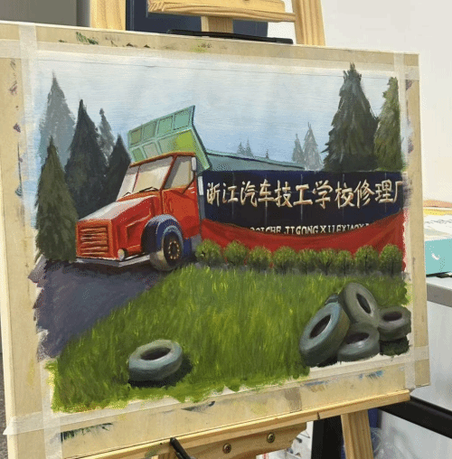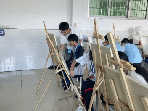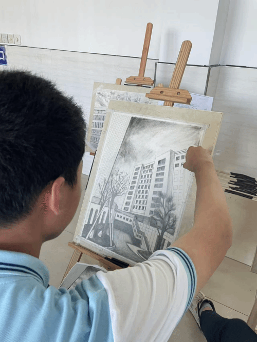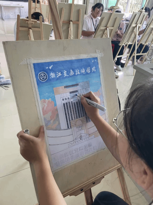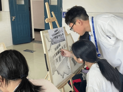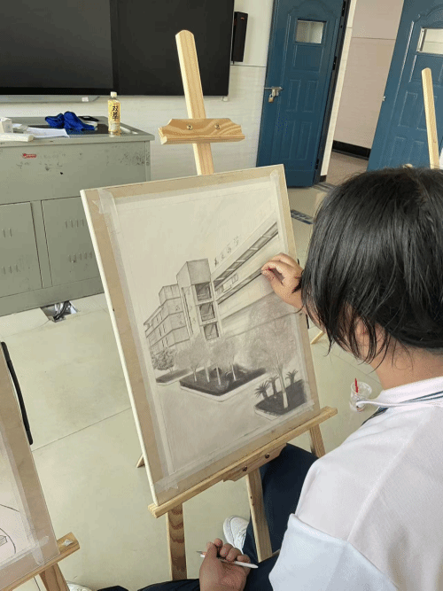 在专业教师的悉心指导下,同学们兴致勃勃地挥动手中五彩斑斓的画笔,齐心协力、全神贯注地共同描绘美丽的校园。他们用线条勾勒出校园的轮廓,用色彩填充出校园的生机与活力,每一笔都饱含着对校园的热爱。