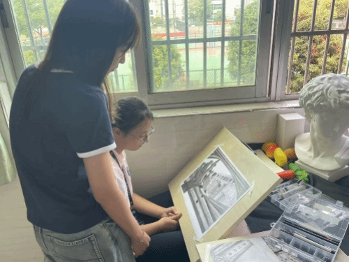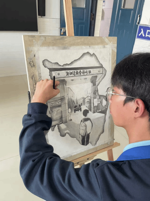 同学们将我校珍贵的历史照片作为灵感的源泉,巧妙地融合了个人独特的创意与无尽的想象,生动地展现出我校五十年辉煌发展历程中的一个个精彩瞬间,让那段激昂奋进的历史在画纸上重新绽放光彩。