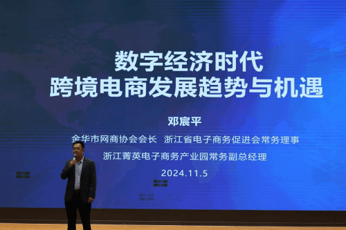 会上,浙江省电子商务促进会常务理事、金华市网商协会会长、浙江菁英电子商务产业园副总经理邓宸平先生为我们带来《数字经济时代跨境电商发展趋势与机遇》的主题分享。他从跨境电商发展历程、跨境电商发展现状、跨境电商面临挑战、跨境电商发展机遇四个方面,为我们描绘了跨境电商行业的发展蓝图,让我们对行业的未来有了更清晰的认识。