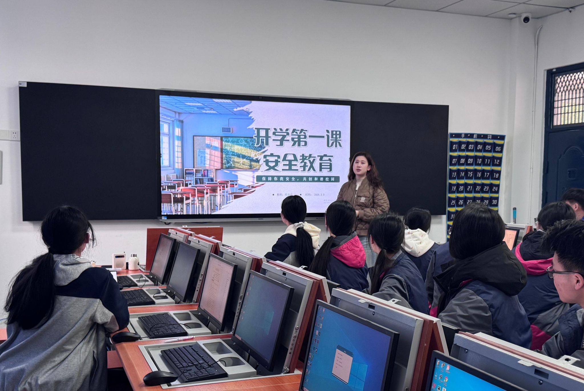 为筑牢校园安全防线,强化学生安全防范意识,3月9日,财经商贸学院各班级在班主任的组织下,开展春季开学安全教育主题班会。本次班会活动紧扣“开学第一课”要求,聚焦消防、心理健康、传染病预防、反诈、防欺凌等六大重点领域,通过案例讲解、实操演练和情景互动,为同学们送上一堂实用的安全必修课。