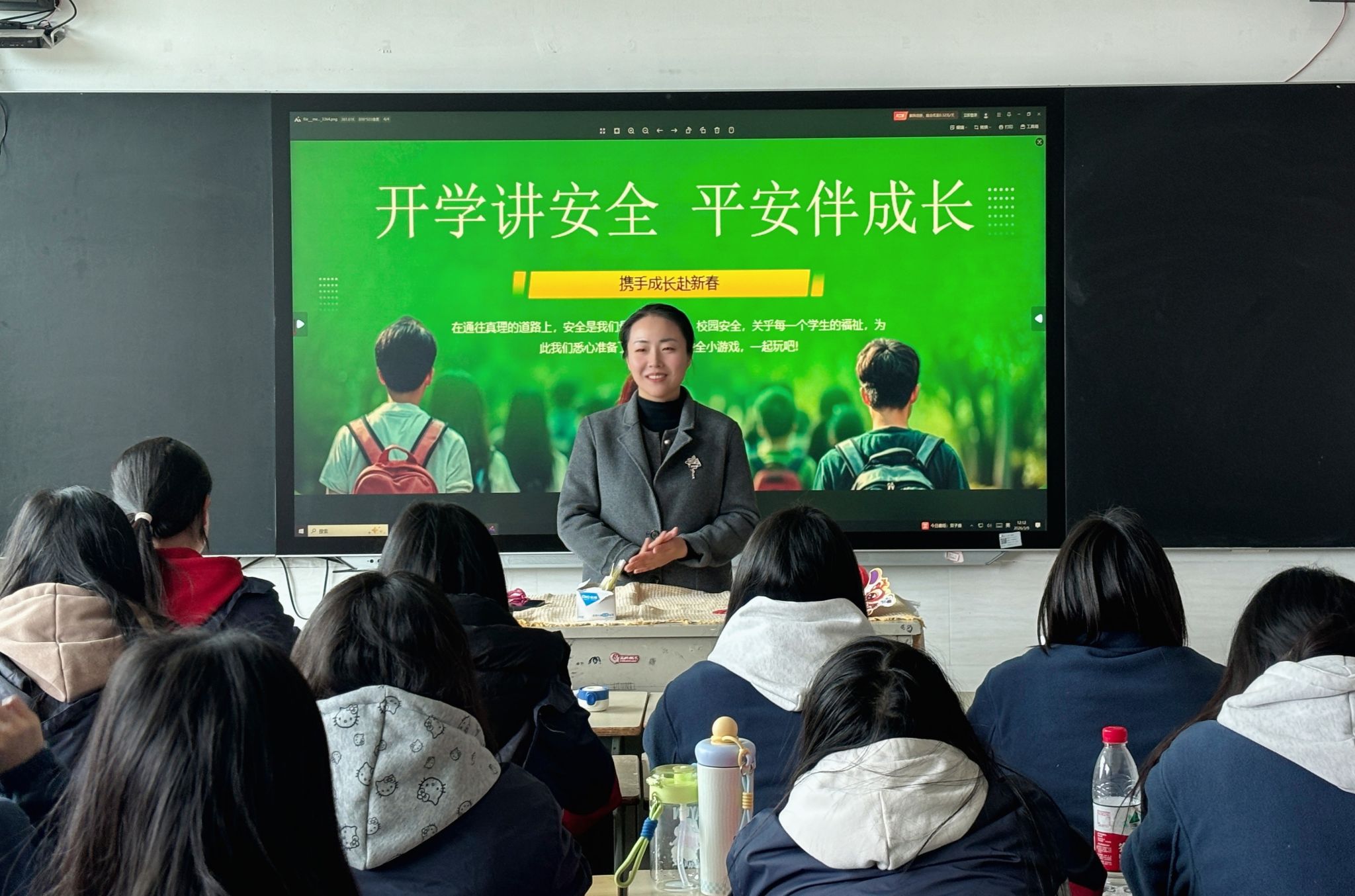 在消防安全环节,同学们通过警示教育短片了解隐患危害,现场学习灭火器操作和火灾逃生要点,部分同学上台模拟演练,掌握应急处置技能。针对春季传染病高发特点,班会强化了“勤洗手、常通风、不共用餐具”的防控意识。