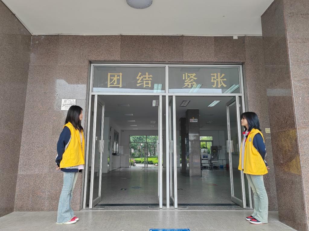 文明礼仪实践周设有礼仪岗、生活岗、服务岗、卫生岗、巡逻岗。礼仪岗的同学们神采奕奕地站在求是楼门前,对过往的老师鞠躬行礼问好表达尊敬,给老师带来愉悦的心情;生活岗的同学们负责检查打扫寝室卫生,认真负责,给同学们营造出一个干净整洁的寝室环境;在操场上打扫卫生的同学们认真清扫,不放过操场上任何一个死角;检查楼层的同学们一丝不苟,保持楼道整洁,维持各班纪律。每个同学都始终坚守在自己的岗位上,在校园的各个角落都有他们一丝不苟的身影。