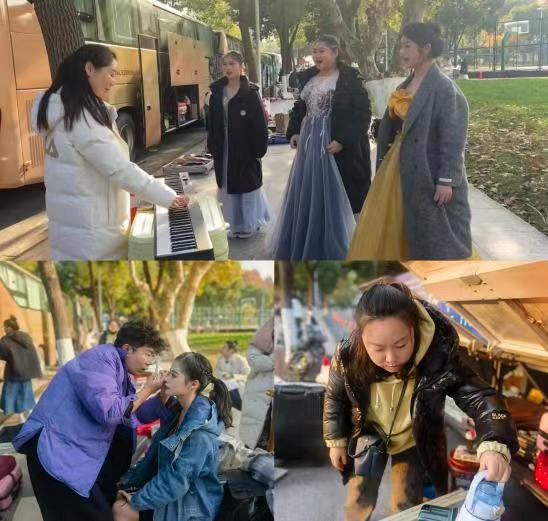 清晨六点学院为同学们准备了高职考专车,幼教班主任石磊、音乐老师孟倩、舞蹈老师韩明哲全程陪同,21级同学们带着精美的妆容精神饱满地出现在金华职业技术学院参加考试。在这次陪考中,我们看到了许多感人至深的场景。首先,为了让考生们更好地适应考试环境,幼教组老师提前到场地熟悉环境,只为在考试当天能提供专业的指导,营造良好的考试氛围。在考试现场,班主任石磊默默付出、静静守望,如母亲般做好学生们的各种后勤工作;音乐老师孟倩站在寒风中耐心地为考生们答疑解惑、开嗓练声,及时为同学们提供专业的指导;舞蹈老师韩明哲一边帮着补妆一边对学生进行舞蹈考前准备。考试现场忙碌而有序,处处都能看到老师们的身影,随时都能听到鼓励的话语。