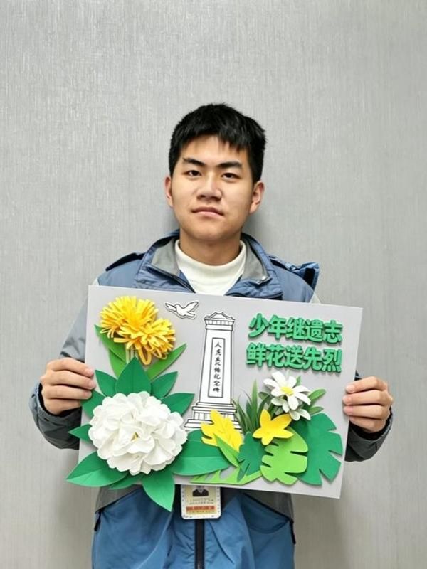 素手制白花,哀思寄英烈。学子们以卡纸、皱纹纸为材,精心裁剪折叠,指尖流转间,一朵朵洁白的小花悄然绽放。每一片花瓣、每一处褶皱,都承载着对革命先烈与先祖的深切追思,朴素的白花里,藏着人文学子的赤诚敬意,也让“慎终追远、敬贤思齐”的传统美德,在手工实践中焕发新生。一幅精美的清明主题手抄报,便是一场沉浸式的文化科普。画面中央,苍劲有力的“清明”二字醒目夺目,既勾勒出节日的庄重,又彰显出人文学子的笔墨功底。