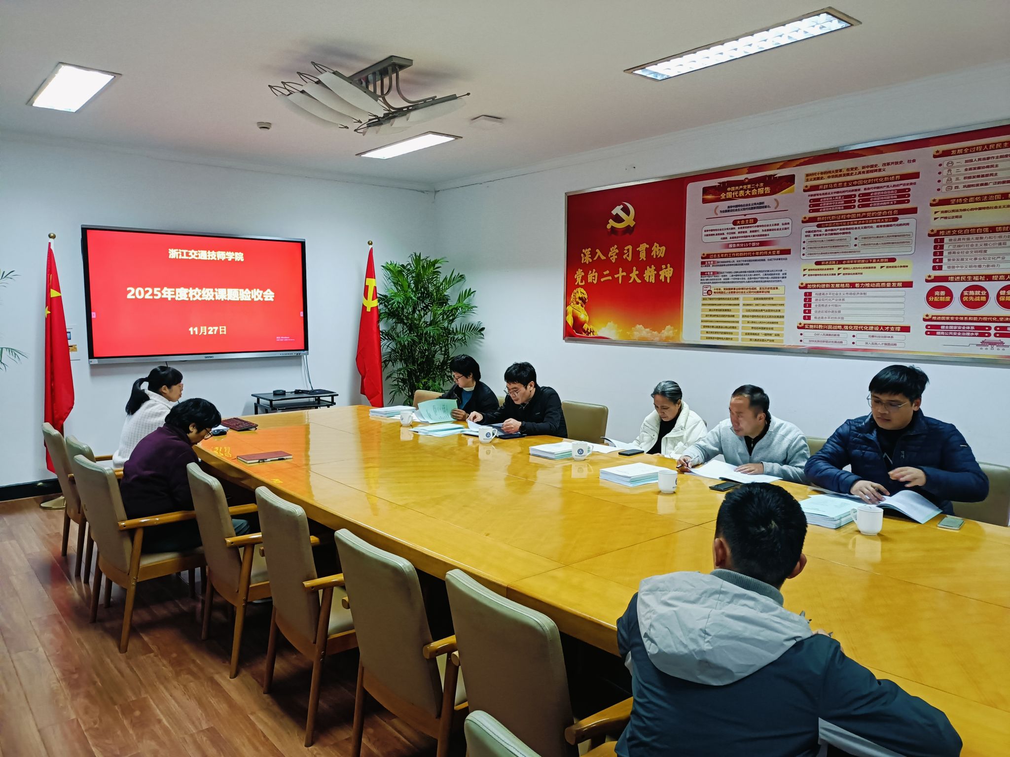 为加强校级课题过程管理,提升科研质量与教科研工作水平,11月24日至12月2日,学校在致远楼第一会议室分组召开2025年度校级立项课题验收评审会。会议对2024年立项课题进行集中验收评审,分别由副校长应建明、副校长许云珍及发展规划部主任谢志平主持,学校学术委员会成员、各教研室主任担任评审专家,全体课题负责人参会。